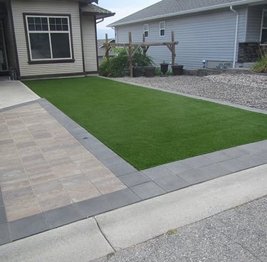 Our pavers and synthetic grass installation turned out stunning. The yard used to be loose rocks, but now we have what we always wanted!
